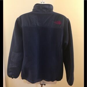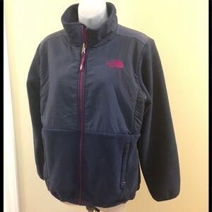 In excellent Preowned condition, no holes, North Face Denali Fleece Jacket GIRLS Size XLarge (18), will fit Woman’s size M/L, side zipper pockets,full zip, classic, durable, fleece jacket made from recycled Polartec® Turning this waste into something cozy and warm, Two hand pockets, shady blue/ Navy color. Elastic-bound cuffs. Bound hem. Zip-in compatible. No trades
