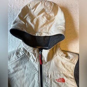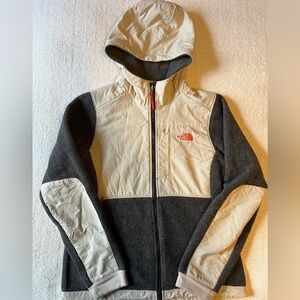 North Face Denali Women’s Hooded Jacket, Beige & Charcoal Gray Full Zip Fleece, Women’s size Small