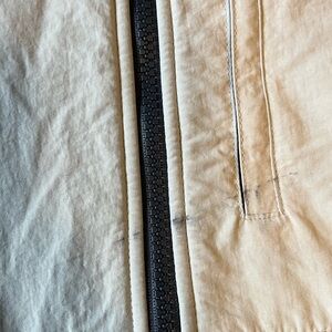 See close-up photo of one dark mark on the front. Otherwise in excellent pre-owned condition. Fleece does not show signs of wear and all zippers work perfectly.