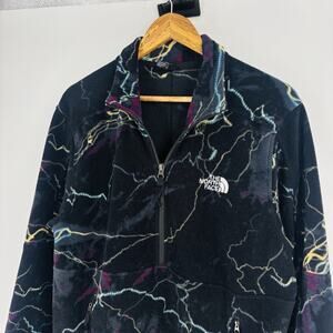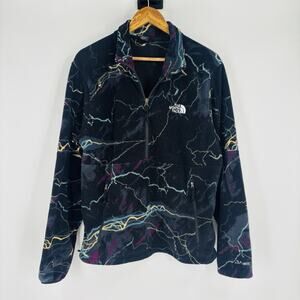 North Face Fleece Jacket 1/4 Zip Mens Medium TNF Black Trail Glow Print
