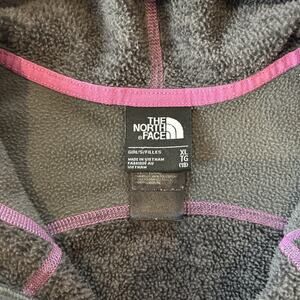 North Face Fleece Jacket Girls Large Grey Pink Hoodie Sweatshirt Hiking Size XL