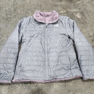 North Face Girls Mossbud Swirl Puffer Reversible Jacket XL (18) Gray Purple