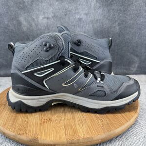 North Face Hedgehog Fastpack II Shoes Womens Size 8 Gray Black Futurelight Vibram Condition: Good pre-owned condition Women's hiking shoes with breathable mesh and synthetic upper Feature North Face logos on sides and tongue Model: Hedgehog Fastpack II (style code NF0A52QT F9L) Futurelight waterproof technology panel for all-weather performance Cradle heel-stability support system for comfort Vibram rubber outsoles for superior traction Padded collar and tongue for support Removable insoles Tag size: US 8, UK 6, EU 39, CM 25 Made in Vietnam Gray with black and off-white accents Great for hiking, trail running, and outdoor adventures