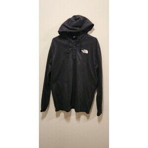 This North Face Hoodie for men in size L is a stylish and functional pullover perfect for outdoor activities like hiking. Made from lightweight cotton knit fabric in a classic black color, this hooded sweater features a crew neck and long sleeves for comfort. The 1/4 snap design adds a touch of convenience, while the solid pattern and logo accents give it a timeless appeal. Machine washable and suitable for all seasons, this North Face hoodie is a versatile choice for any casual occasion.