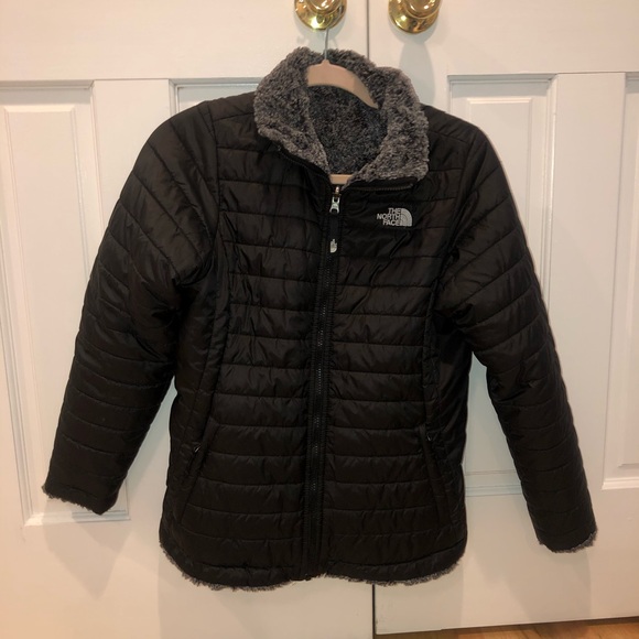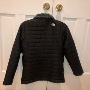 Black and fuzzy reversible North Face winter coat. Kids size 18 but Adult Small. Great condition. Really warm. Willing to negotiate price.