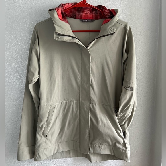 North Face spring jacket, water resistant fabric-not seam sealed so not completely water proof but holds up very well in rain as if it was water proof