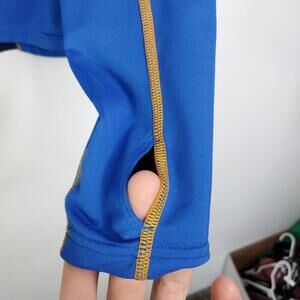 Crafted for the active man, this North Face Men's Size M Track Jacket combines functionality with style. The blue polyester outer shell provides durability and resistance to the elements, while the vapor wick technology ensures you stay dry and comfortable during your runs and jogs. The long sleeves, stretch fabric, and breathable features offer athletic flexibility and performance for any sports-themed activity.Details like the convenient 1/4 zip closure make this jacket both practical and fashionable, perfect for the athleisure enthusiast. Designed to be machine washable for easy care, this jacket is a versatile addition to your wardrobe, suitable for fall, spring, and winter seasons. Whether you're hitting the track or the trails, this jacket is built to keep up with your active lifestyle.