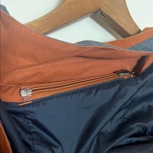 Color: Burnt Orange and Blue/Grey Denim Pattern