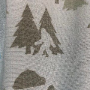 Accents of bright blue and green hide sasquatch sneaking through the woods.