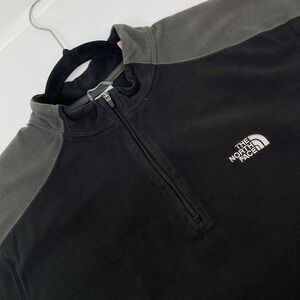 North Face Mens Large Black Gray Quarter Zip Thermal Fleece Pullover Sweatshirt