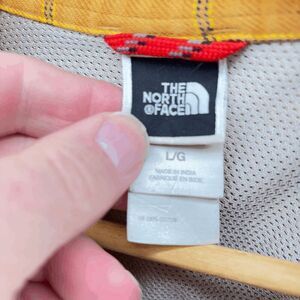 North Face Mens Large Yellow Button Up Shirt Plaid Long Sleeve Zip Pocket Shirt