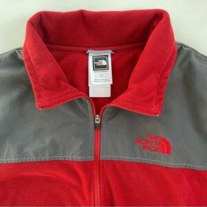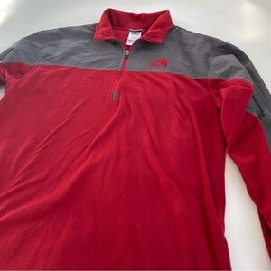 North Face Men's Red Gray Quarter Zip TKA100 Fleece Pullover Size Small