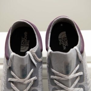 The North Face Men's VECTIV Escape Knit Trail Running Shoes in Gray/White/plum are designed for active men who enjoy hiking and running. These sneakers feature a lace-up closure, cushioned insole, breathable knit upper, and rubber outsole for performance and comfort. The heathered pattern and North Face branding add a stylish touch to these athletic shoes. These are a men's size 14 and have only been worn once or twice! Basically look new! Great tread and comfortable step!