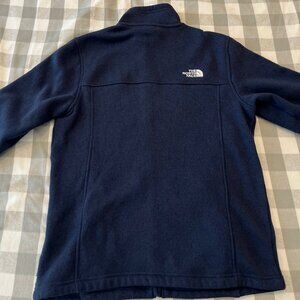 Ultra warm North Face Tsilan fleece full-zip sweater jacket. Summit Navy Heather colorway, size large.