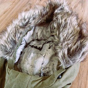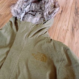 North Face Mens XL Green Fur Goose Down Winter Puffer Jacket Heavy Parka Coat