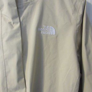 Brand new rain jacket from North Face in a size Xl in beige with white logo accents. The upc partially torn but is called City Breeze and retails at $160, beautiful jacket for winter season. Covers the butt with tightening around the waist. Has a hood as well. Price firm as still have to pay Posh cut !
