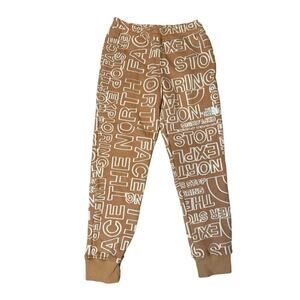 North Face Boys Fleece Joggers Almond Butter Size Large/12 with Spell out pattern