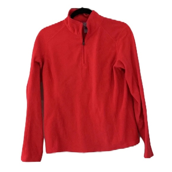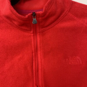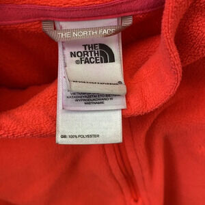 Bright pink and really fun! Would keep if it still fit me. North Face size medium. Quarter zip. Pullover. No pockets and preowned no flaws!