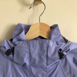 Outer shell. Has zippers for another jacket. Like new. Barely worn. Size small. Velcro sleeves. It was hard to capture its color in all the photos, but it’s the more vibrant, deeper lilac color.