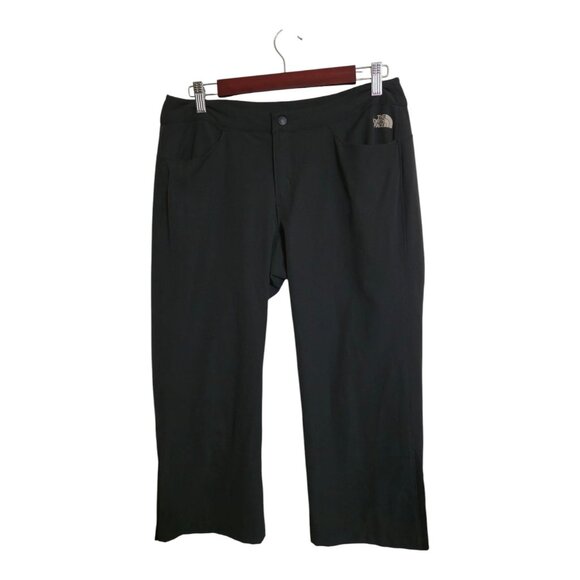 Elevate your outdoor style with these black North Face pants for women. Designed with a solid pattern and low-rise waistband, these lightweight and durable capri pants are perfect for hiking and camping. The drawstring closure and button accents add a touch of convenience and style to these athletic-fit pants.