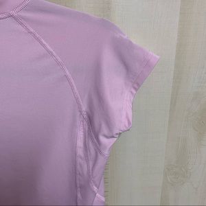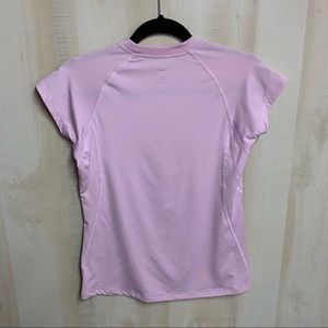 Excellent preowned condition North Face Performance Tee. Pale pink in color with iconic White logo on chest. Looks to be a rash guard with small loop on inside of tee to make shirt stay in place. Size Medium. No flaws or any signs of wear. Prefect for swimming, hiking, kayaking, or running. Quick drying material.