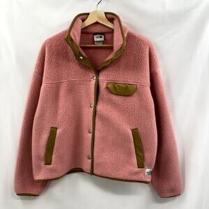 Gently used, please note the second to top button is broken, and there is some general wear to the sherpa. price reflects