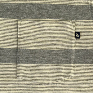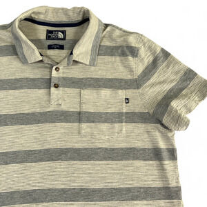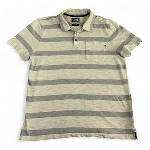 North Face Polo Shirt Gray Striped Pocket Adult LARGE