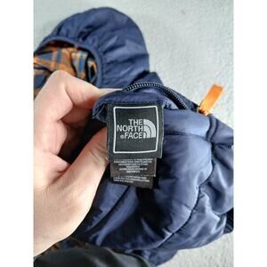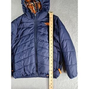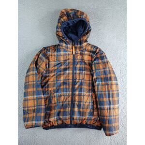 North Face Puffy Jacket Boy Small (7/8) Reversible Plaid Blue Orange Coat Puffer