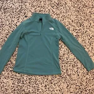 Like new and still very soft! I have barely worn this cozy quarter zip. Great for runs/hikes or a comfy outfit. I would describe the color as turquoise blue