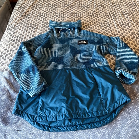 North Face cowl neck pullover. Size medium. Cute blue/white geometric pattern.