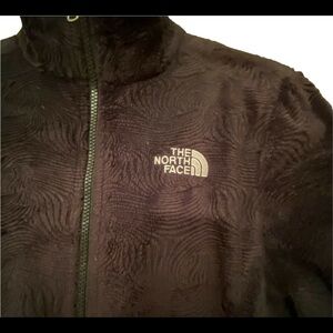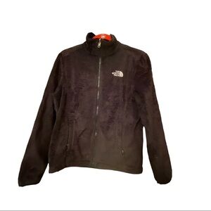 North Face Rare Swirl Pattern Fleece Jacket Osito Women Black Zip Pockets Sz S/P