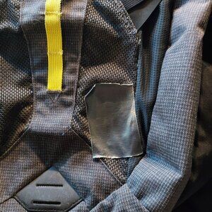 There are two holes on the pack. One is on the front mesh stash pocket (see second picture). The other hole is on the left water bottle pocket. Both holes have been repaired with T-Rex brand tape.