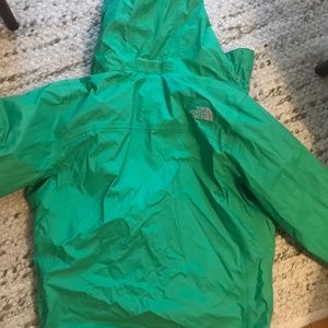Green hooded North Face rain jacket in excellent used condition. No rips, stains, or holes.
