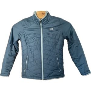 North Face Reversible Fleece Jacket Womens Medium Blue Full Zip Sherpa Fleece