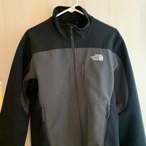 Gray and black full zip North Face shell jacket. Great for layering with other clothes. Size S, but fits great on me (I'm 6 ft and 170 lbs). In good condition and is ready for a lot more use!