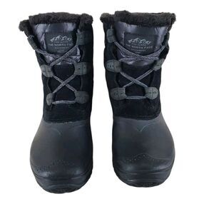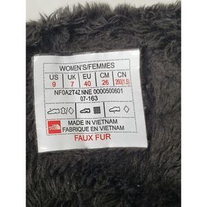 These are women's North Face Shellista Shorty Boots in size 9 (US) or 40 (EU), featuring a black color with faux fur lining. The mid-calf boots have a round toe shape and are waterproof and insulated, perfect for winter and outdoor activities. The boots offer comfort and are suitable for travel, activewear, and casual occasions.