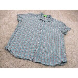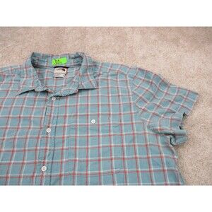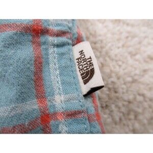 North Face Shirt Men Extra Large Blue Orange Plaid Cotton Hemp Outdoor Button Up