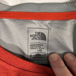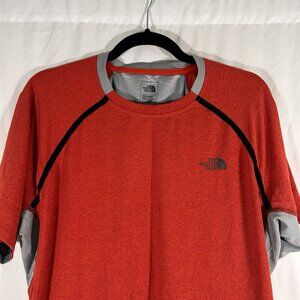 North Face Shirt Men's Large Orange Grey Short Sleeve Crew Neck Breathable