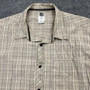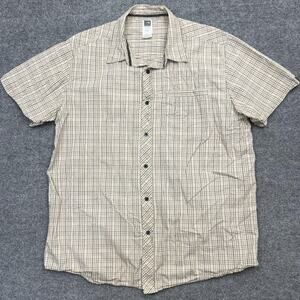 North Face Shirt Mens XL Beige Plaid Button Up Short Sleeve Outdoors Hiking Cotton