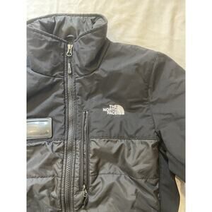 This appears to be a skiing instructor North Face jacket from Stratton Mountain ski resort. Very lightweight close-fitting jacket with quilted panels front and back. Standup collar, and stretchy side panels for a flattering fit. Great for layering or spring skiing.