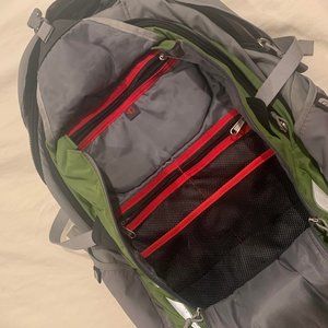 Awesome backpack used in college, but haven't used it in over 5 years. Great condition. Has a ton of pockets. It is missing the straps that go around your waist. Breast clips still in place.