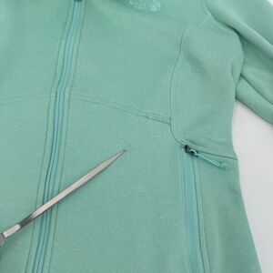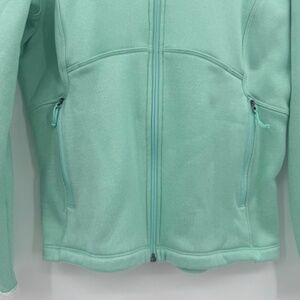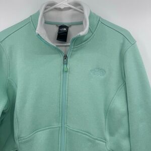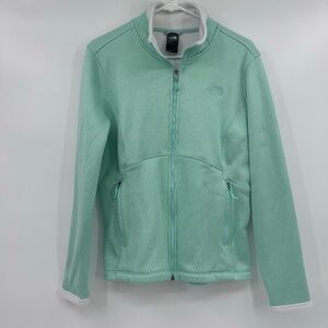 North Face Sweater Women Large Green White Full Zip Terry Outdoor Mock Neck
