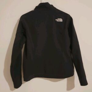 The North Face Apex Barrier Jacket is a men's softshell jacket in black, size small. It features a solid pattern with zipper closure, embroidered logo accents, and zipped pockets. This overcoat is designed for outdoor activities like walking, hiking, and running in winter, fall, and spring. The lightweight jacket is part of The North Face Apex product line, suitable for travel, casual, and workwear occasions.