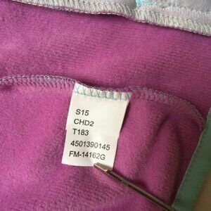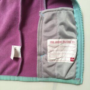 The North Face Toddler Full Zip Hoodie Jacket in Purple with light blue binding, size 6-12 months, is a stylish and functional outerwear piece for babies and toddlers. Made of durable polyester material, this basic jacket features a hood for added warmth and protection. With a full zip design, it is easy to put on and take off, making it perfect for outdoor activities during the winter, fall, and spring seasons. The vibrant purple and light blue binding color combination adds a fun and sporty touch to the unisex design, making it a versatile and practical choice for young children.