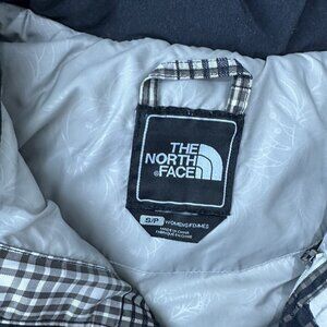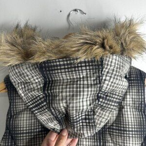 North Face Vest Womens Small Gray Black Plaid 600 Down Hood Faux Fur Puffer Jacket