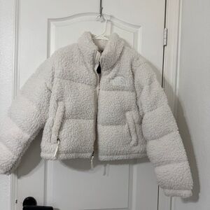 North Face White Nuptse Down Teddy Puffer Jacket Size L
