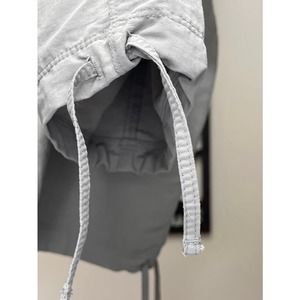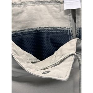 These great capris are beige/tan in color and are mid-rise with plenty of pockets. Features a button & zip closure and drawstring hem.