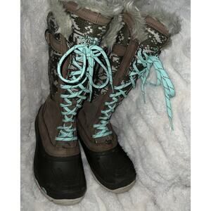 North Face Women Wool Knit + Leather Snow Outdoor Tall Boots Multicolor Brown 7