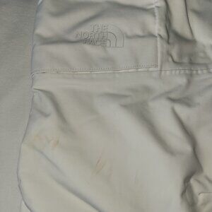 I bought these from the North Face Renewed website as they have a small light stain on the right leg near the knee (see photots) almost looks like make up, but I haven't tried anything to get it out. I am selling them because I need these in the Tall size and this is just a Regular M size.