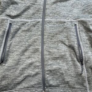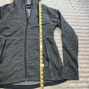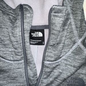 This is a preowned North Face Womens Grey Hoodie Full Zip Sweatshirt Size Medium. It is in good preowned condition. Please look at the pictures for the condition of the fleece.